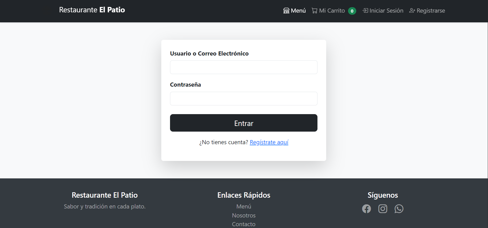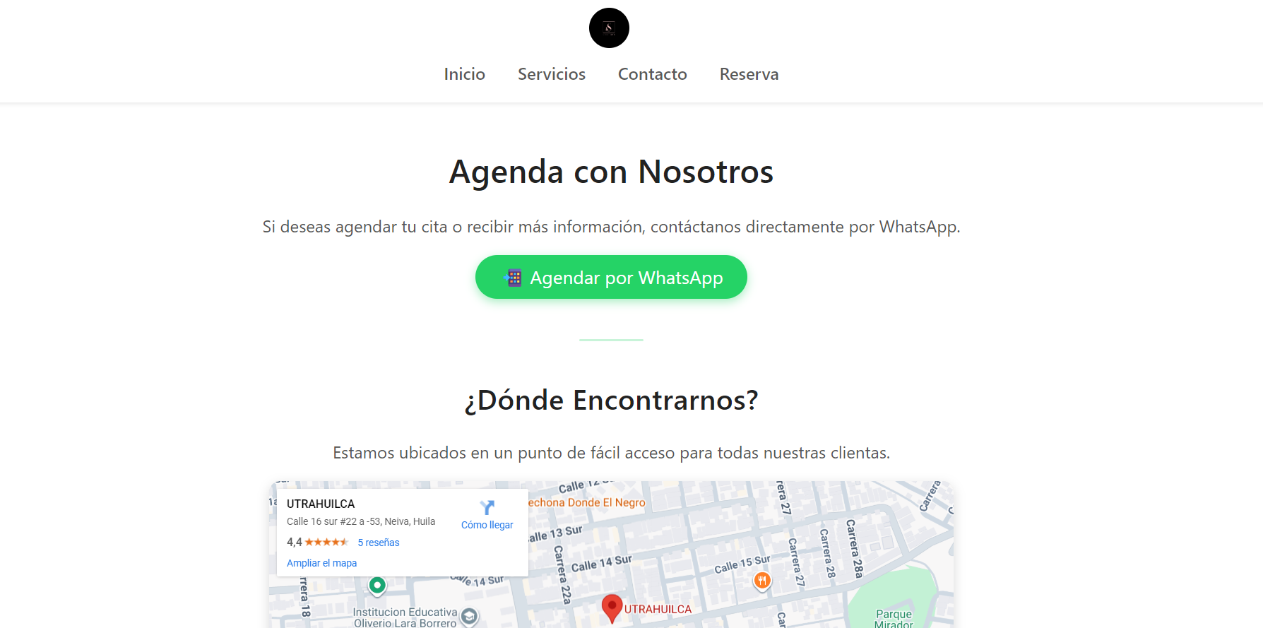 información del negocio, horarios y ubicación, además de accesos directos a redes